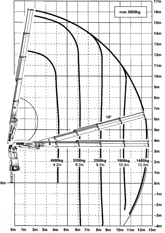 (4 m -> 5 t / 8,20 m -> 2,3 t / 13 m -> 1 t)